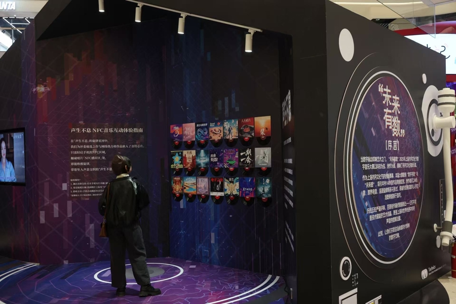 以声波模拟物质世界的跃迁状态,描绘科学邂逅艺术创造的交融之美。11月15日下午,虹口区滨港商业中心LG2层分外热闹,电子音乐获奖作品《声子跃迁》拉开了“未来有数”2025年上海市民文化节数字音乐大赛颁奖展演的帷幕。